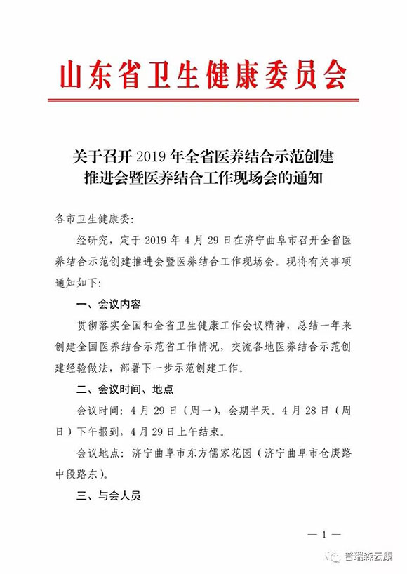 2019年全省醫養結合示范創建推進會暨醫養結合工作現場會2019年4月29日上午8時左右,山東普瑞森醫療設備股份有限公司各部門負責人在王總的帶領下參加在曲阜市舉行的“2019年全省醫養結合示范創建推進會暨醫養結合工作現場會”,并陪同省衛健委領導參觀小雪社區衛生服務中心醫養結合示范點。