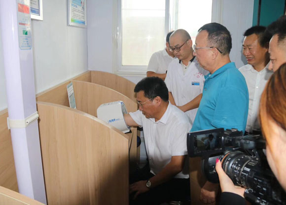 河南省市領導和汝南縣縣委書記等領導參觀指導赴駐馬店汝南縣三門閘醫院參觀考察國家公共衛生智能健康管理中心。
