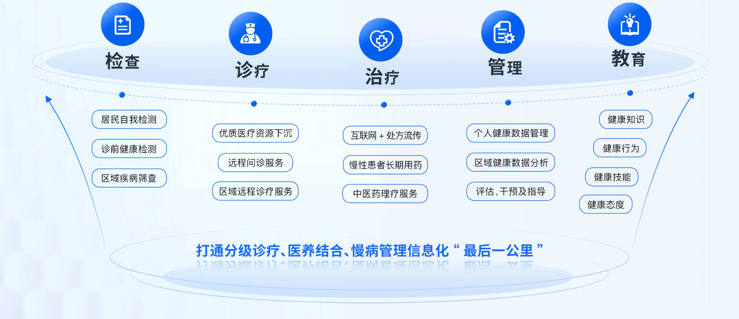 "信息化融合,構(gòu)建完善的分級診療、醫(yī)養(yǎng)結(jié)合和慢病管理,解決健康服務(wù)的最后一公里"