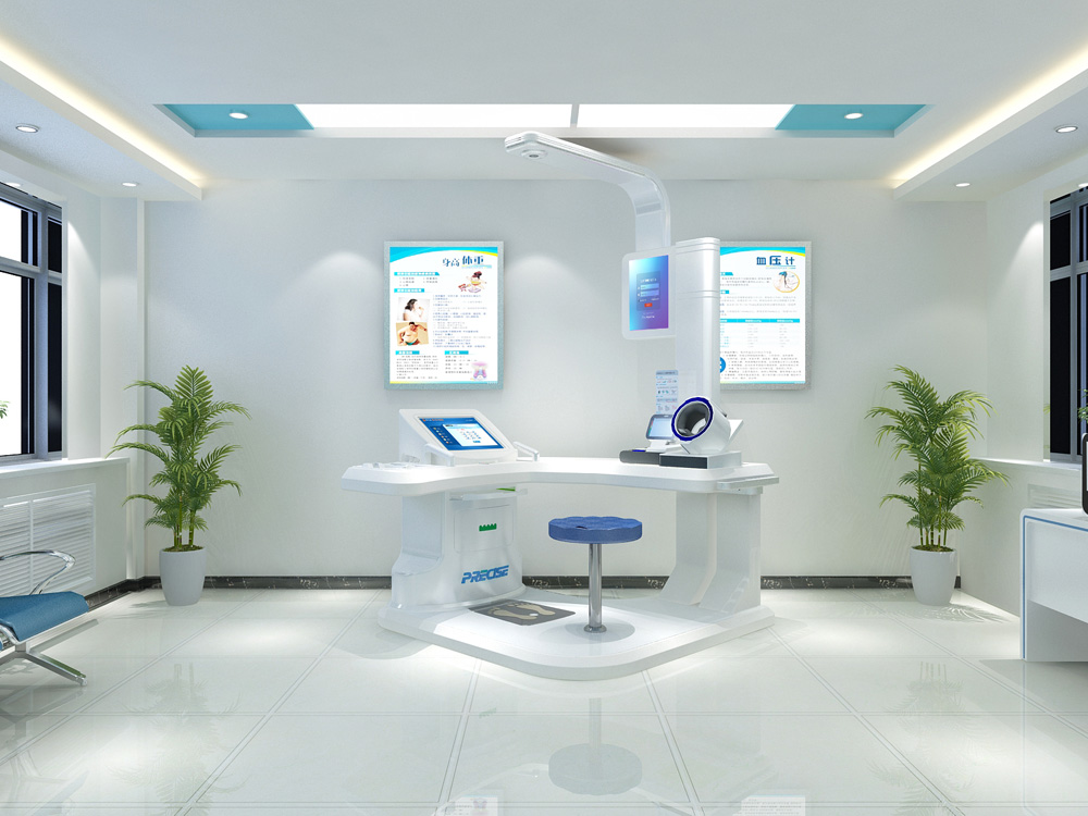 1、整體轉(zhuǎn)角式、流暢式設(shè)計(jì),醫(yī)療科技感十足,便于體檢者一次性自助式完成各項(xiàng)體檢項(xiàng)目。